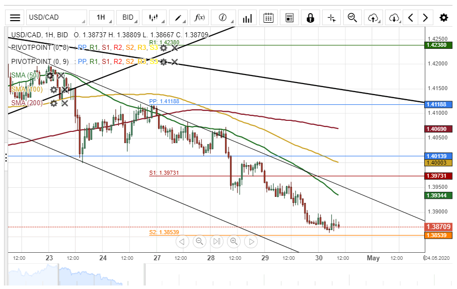 The US Dollar declined by 118 basis points or 0.84% against the Canadian Dollar on Wednesday. The currency pair tested the monthly S2 at 1.3853 on Thursday morning.