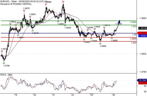 Our preference Long positions above 1.0900 with targets at 1.0930 & 1.0945 in extension.