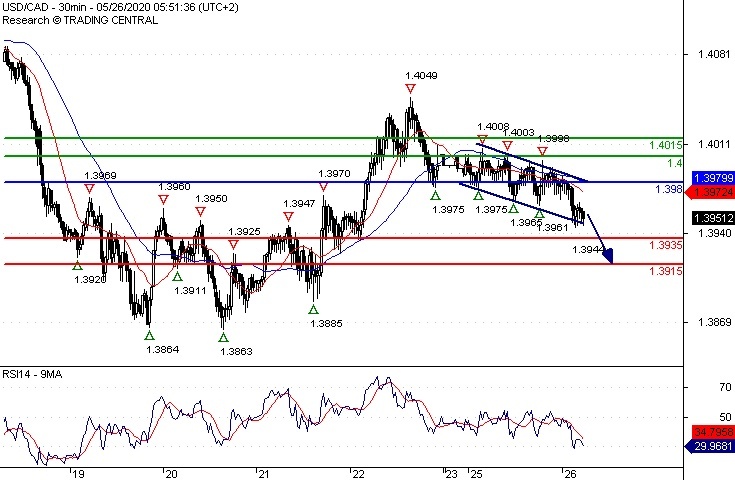 Our preference Short positions below 1.3980 with targets at 1.3935 & 1.3915 in extension.