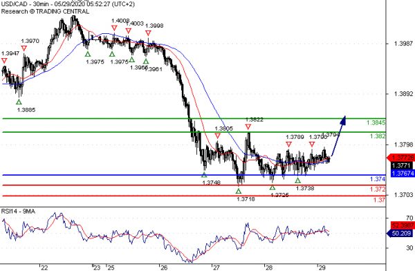 Our preference Long positions above 1.3740 with targets at 1.3820 & 1.3845 in extension.
