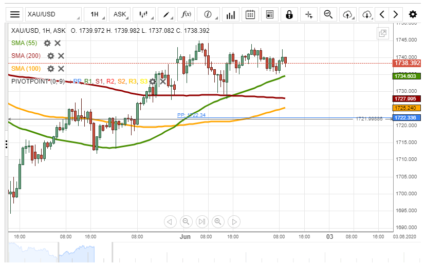 Given that yellow metal is supported by the 55-, 100– and 200-hour moving averages in the 1,725.00/1,735.00 range, it is likely that some upside potential could prevail.