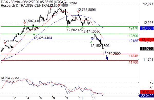 Our preference Short positions below 12185.00 with targets at 11845.00 & 11700.00 in extension.