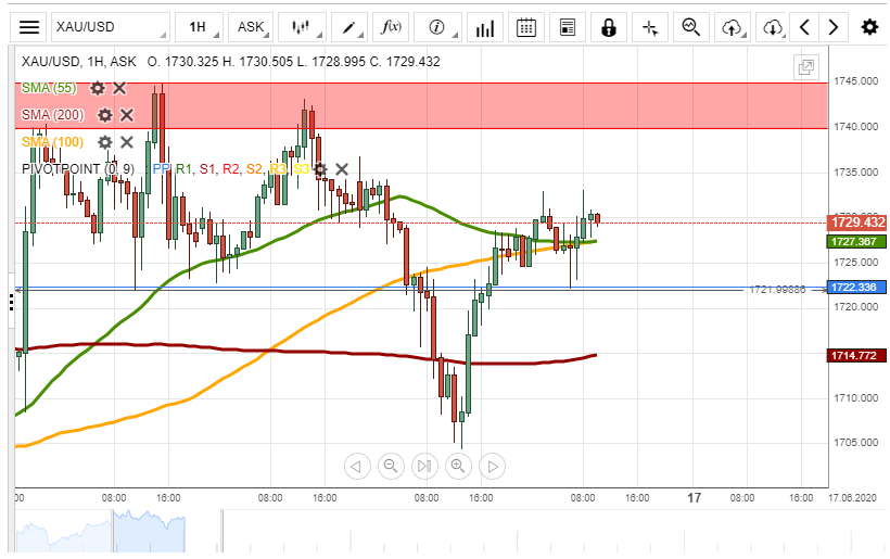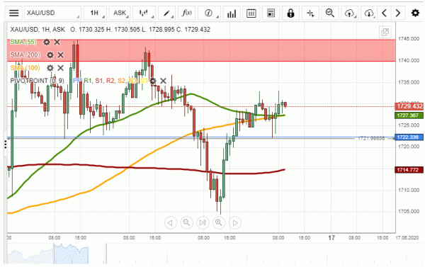 Yesterday, the XAU/USD exchange rate reversed north from the 1,705.00 level. During Tuesday morning, the rate was trading at 1,730.00.