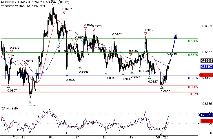 Our preference Long positions above 0.6825 with targets at 0.6875 & 0.6905 in extension.