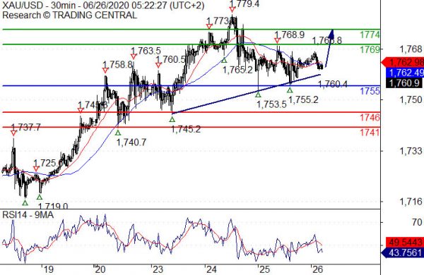 Our preference Long positions above 1755.00 with targets at 1769.00 & 1774.00 in extension.