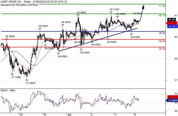 Our preference Long positions above 39.85 with targets at 40.75 & 41.25 in extension.