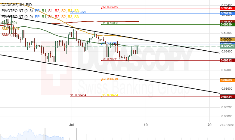 On the other hand, the currency exchange rate could breach the 50– period simple moving average at 0.6956 and target the 0.6998 area during the following trading sessions.