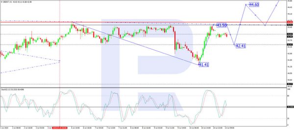 In the H4 chart, after finishing the correction at 41.41, Brent is forming a new ascending impulse towards 43.50. After reaching this level, the instrument may start another correction. However, if the price breaks 43.50 to the upside, the pair may continue trading upwards with the short-term target at 45.55. From the technical point of view, this scenario is confirmed by MACD Oscillator: its signal line is moving close to 0. Later, the line is expected to rebound from 0 and resume moving upwards.