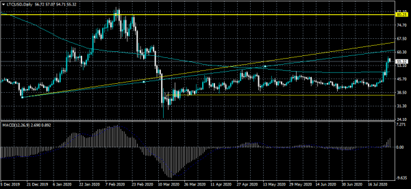 The LTCUSD pair is only bullish while trading above the $52.00 level, key resistance is found at the $60.00 and the $64.00 levels.