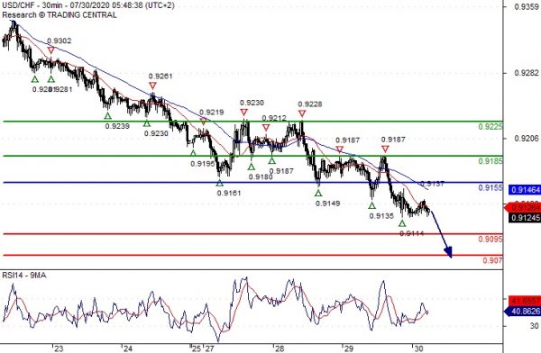 Comment As Long as 0.9155 is resistance, look for choppy price action with a bearish bias.