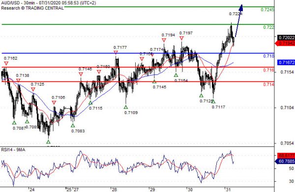 Our preference Long positions above 0.7180 with targets at 0.7220 & 0.7245 in extension.