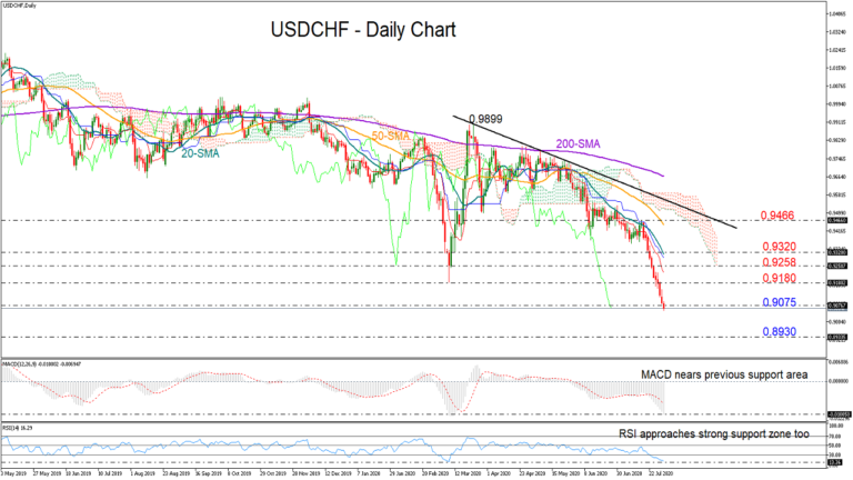 Otherwise, if the pair rebounds near 0.9075, the bulls may need to jump above the 0.9180 barrier and then run beyond the 0.9258 obstacle to reach the 20-day SMA currently around 0.9320. Higher, the spotlight would shift to the swing high of 0.9466, a break of which would confirm the end of the bearish wave. Yet, only a rally above the descending trendline could raise speculation that a bullish trend is in progress.