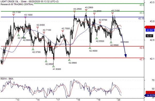 Alternative scenario Above 43.15 look for further upside with 43.30 & 43.50 as targets.