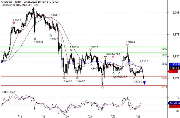 Our preference Short positions below 1942.00 with targets at 1923.00 & 1911.00 in extension.