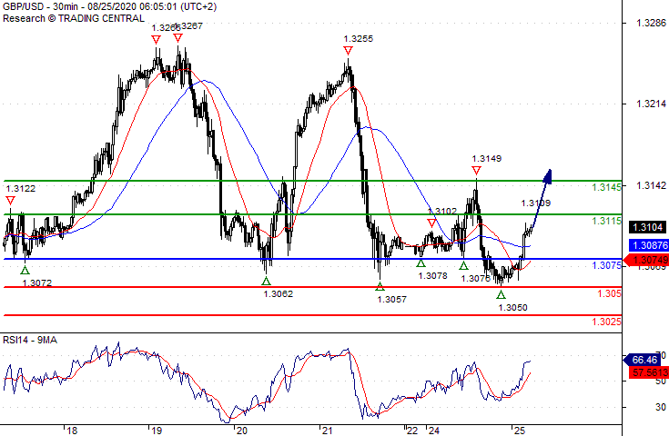 Our preference Long positions above 1.3075 with targets at 1.3115 & 1.3145 in extension.