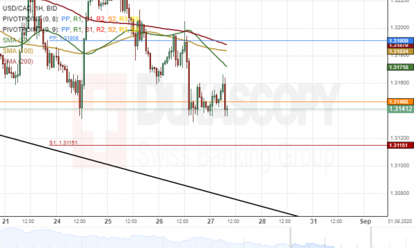The US Dollar declined by 64 pips or 0.49% against the Canadian Dollar on Wednesday. The currency pair breached the monthly support level at 1.3146 during Wednesday’s trading session.