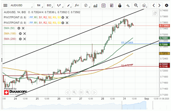 However, the currency exchange rate is likely to make a brief retracement towards the 0.7300 level within this session.