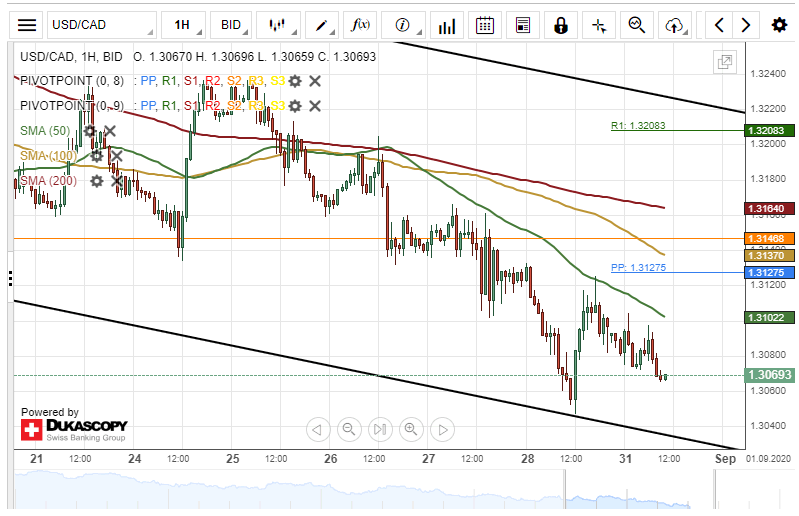 All things being equal, the USD/CAD exchange rate is likely to maintain trading in the descending channel pattern during the following trading hours. Bearish traders could target a support level at the 1.3040 area.