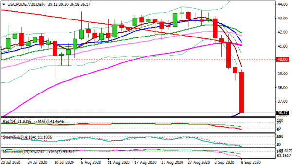WTI oil slumped on Tuesday (so far down 6.1% for the day), extending steep fall into fifth straight day.