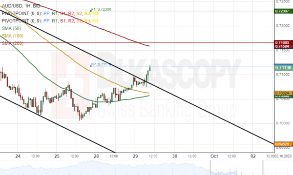 However, the weekly pivot point at 0.7117 could provide resistance for the currency exchange rate within this session.