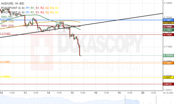 Given that a breakout had occurred, the exchange rate is likely to continue to edge lower during the following trading session. The possible target for bears would be at the weekly S2 at 0.7045.
