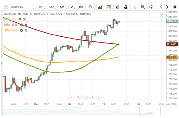 Yesterday, the XAU/USD exchange rate could continue to trade upwards. The rate reached the 1,840.00 mark.