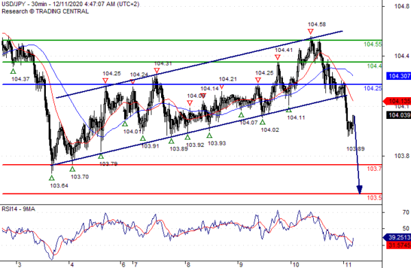 Alternative scenario Above 104.25 look for further upside with 104.40 & 104.55 as targets.