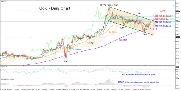 On the flip side, a pullback below the 38.2% Fibonacci of 1,882 may stretch towards the 23.6% Fibonacci of 1,837. Slightly lower, the 200-day SMA at 1,815 could attract special attention before all eyes turn to the 1,764 bottom.