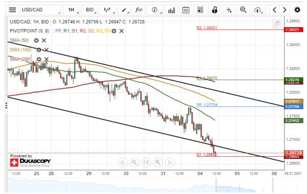 The US Dollar has declined by 74 points or 0.58% against the Canadian Dollar since December 31. The currency pair was pressured lower by the 50– hour simple moving average.