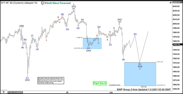 Up from there, wave ((x)) bounce ended at 1997.60 as another double three Elliott Wave structure in lesser degree. Wave (w) ended at 1987.4, pullback in wave (x) ended at 1958, and wave (y) ended at 1997.60. This completed wave ((x)) in higher degree. Wave ((y)) lower is currently in progress as a zigzag where wave (a) ended at 1920.5. Expect wave (b) bounce to fail below wave ((x)) high at 1997.60 and Index to turn lower 1 more time in wave (c) of ((y)) towards 1857.31 – 1911.16. This last move lower should end wave 4 in higher degree. From there, Index should resume to new high or bounce in 3 waves at least.