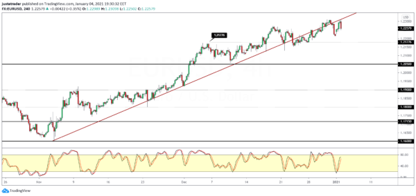 The euro currency gapped higher on the open on Monday as traders returned from the year-end holiday.