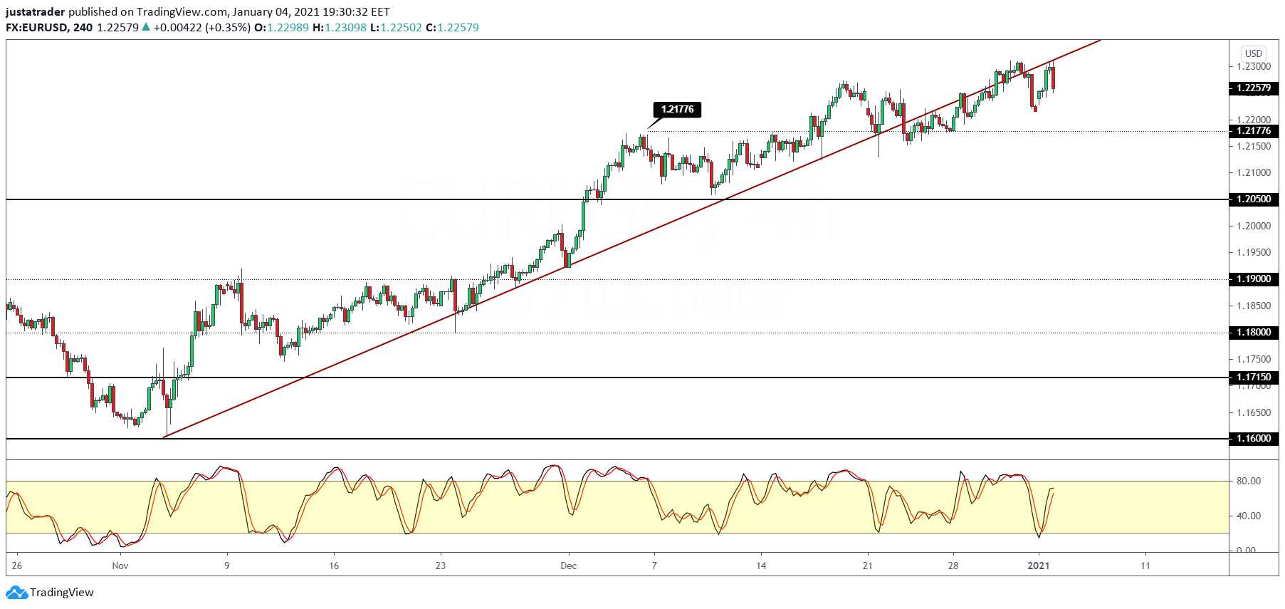 A break down below January 1 lows of 1.2121 could validate the bearish pattern. For the moment, the EURUSD is likely to trade within the highs and lows of 1.2312 and 1.2121 respectively.