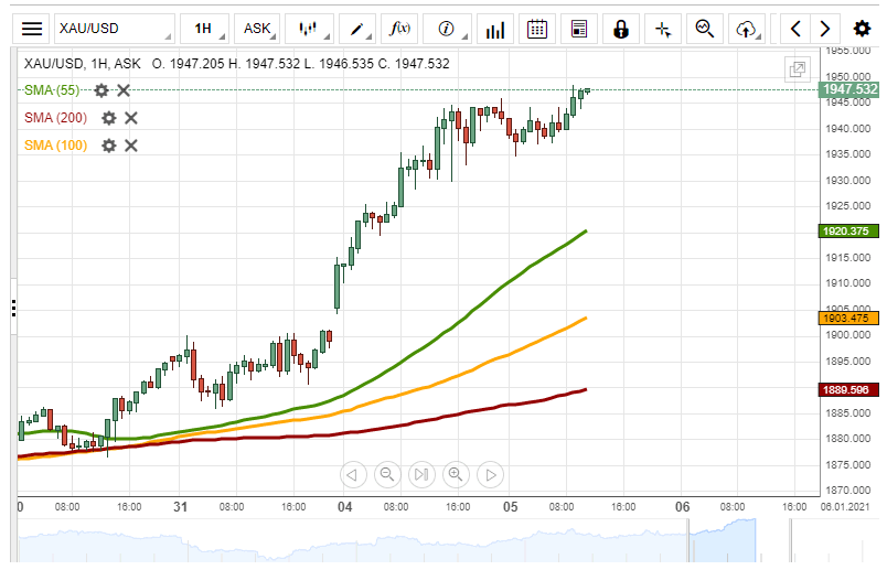 Since Monday afternoon, the XAU/USD exchange rate has been consolidating near 1,945.00.
