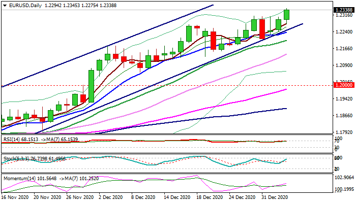Break of 1.23 barrier, under which the pair was congested in past four days, triggered stops above and helped bulls.