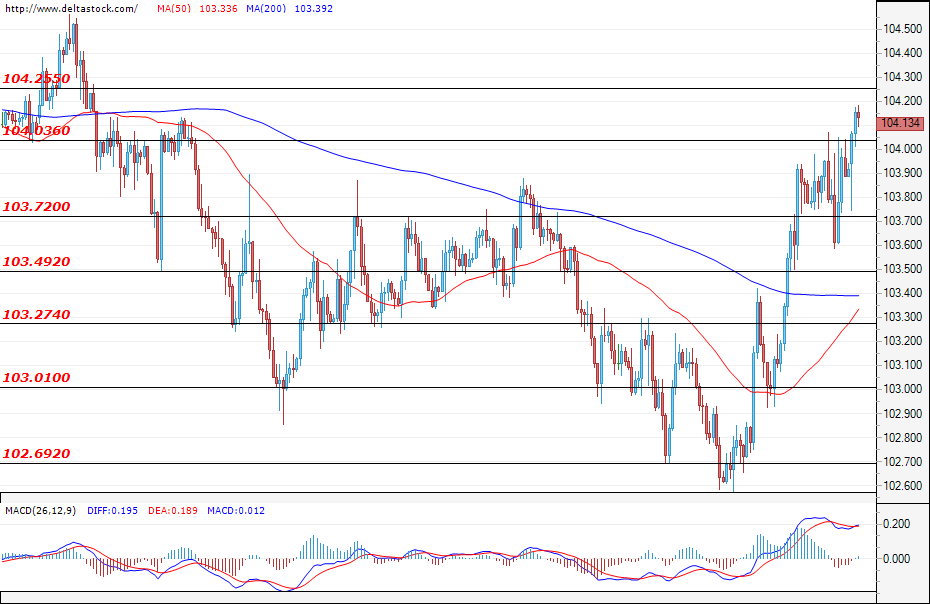 The U.S. dollar managed to gain quite a bit of momentum during the last trading session and this positive move is also present today. The bulls are about to attack the level of resistance at 104.25, where it is quite possible for them to be thwarted by the bears. This, in turn, could help the bears find better levels to enter the market around the mentioned level and push the movement in a negative direction once again in order to reach the support zone at around 102.70.