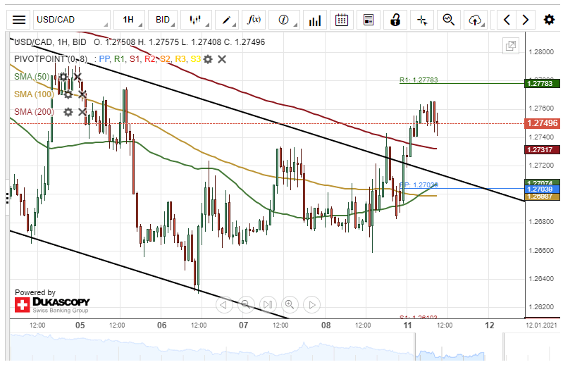 Given that a breakout has occurred, bullish traders are likely to continue to pressure the exchange rate higher during the following trading session. The potential target for the USD/CAD pair would be near the 1.2800 level.