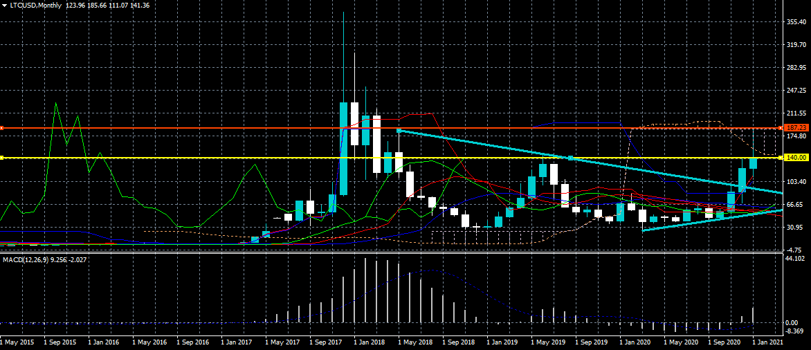 If the LTCUSD pair trades below the $140.00, sellers may test the $120.00 and $100.00 support levels.
