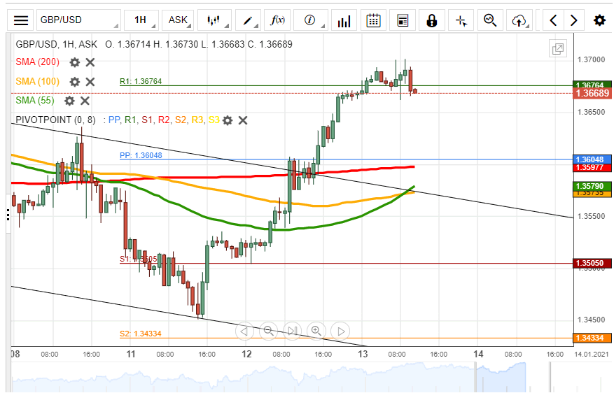 Yesterday, the GBP/USD exchange rate breached the short-term descending channel north and skyrocketed to 1.3700.