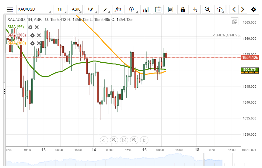 Given that yellow metal is supported by the 55– and 100-hour SMAs near 1,850.35, it is likely that some upside potential could prevail in the market. The rate could raise to the 200-hour SMA near 1,884.20.