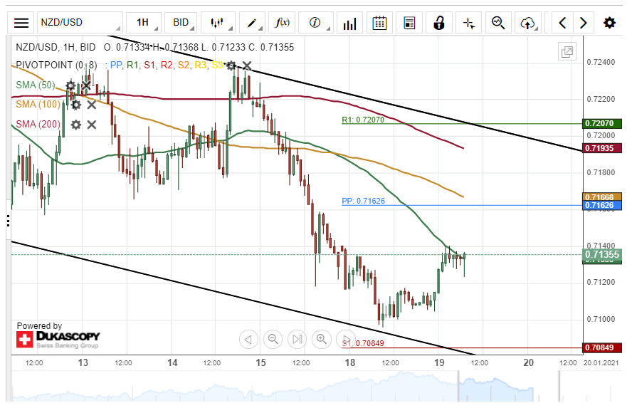 The New Zealand Dollar declined by 43 pips or 0.60% against the US Dollar on Monday. The NZD/USD currency pair tested the 0.7100 level during yesterday’s trading session.