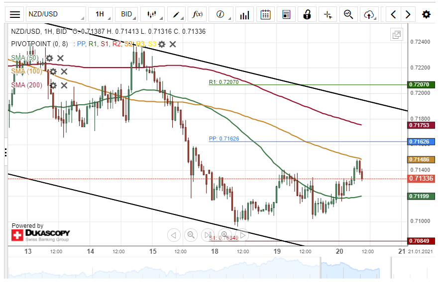 The New Zealand Dollar has surged by 44 points or 0.62% against the US Dollar since Tuesday’s trading session. The currency pair tested the 100– hour simple moving average at 0.7148 during the London session on Wednesday.