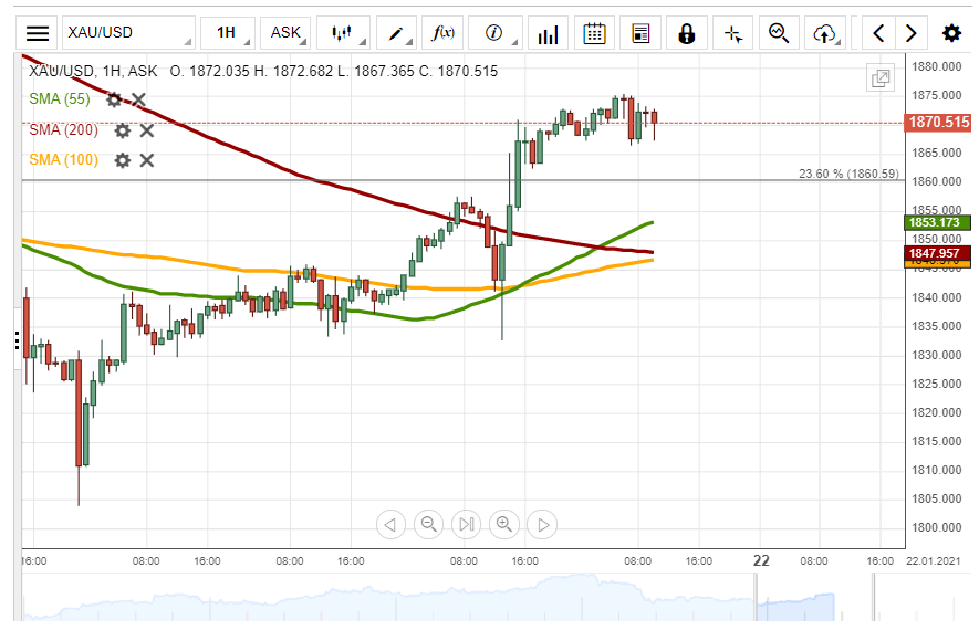 The XAU/USD exchange rate has raised to the 1,875.00 level.