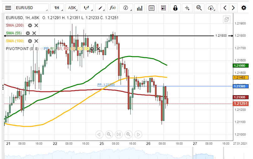 Yesterday, the EUR/USD currency pair reversed south from the resistance level at 1.2180.