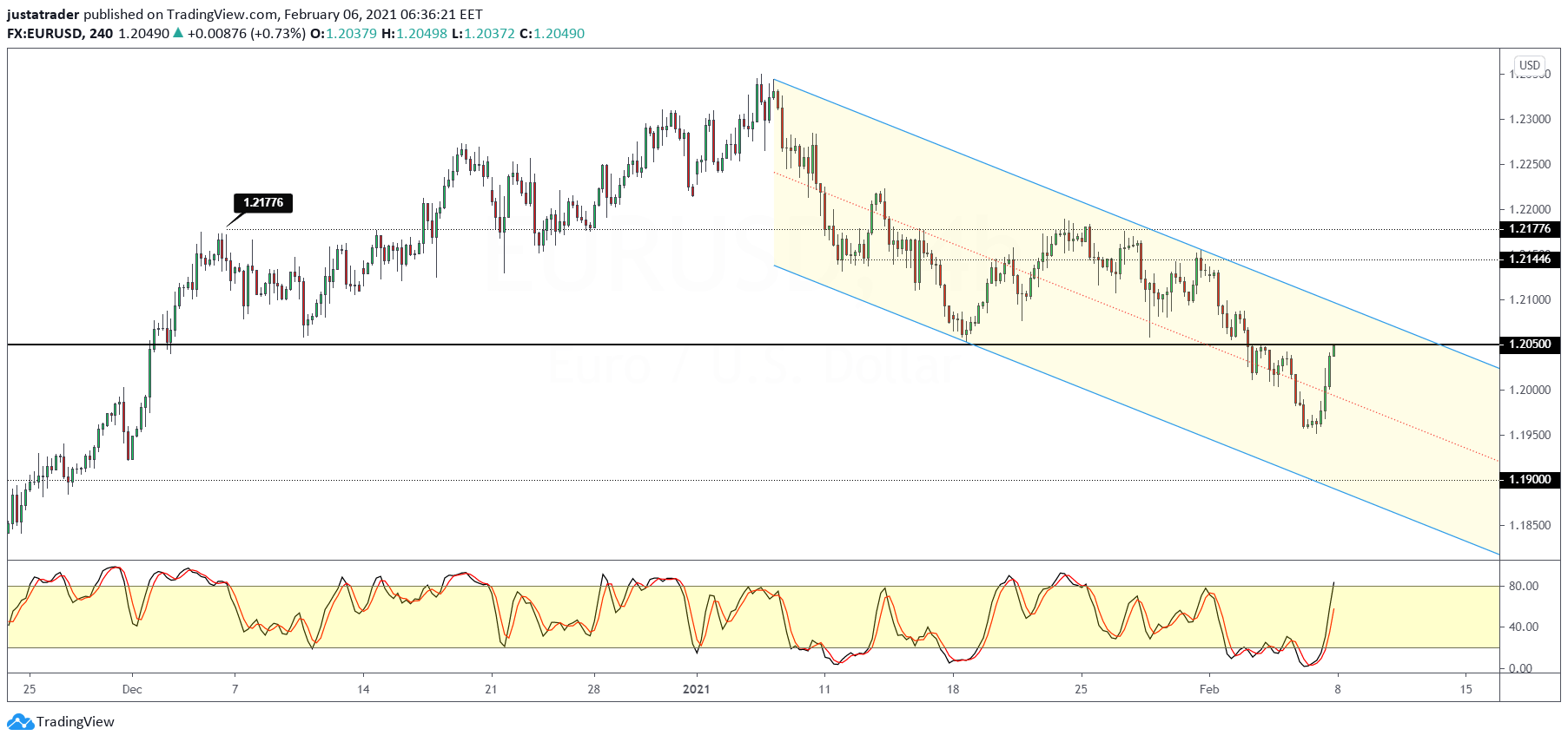 As a result, prices pared losses to close on Friday near 1.2050. This level initially served as support.