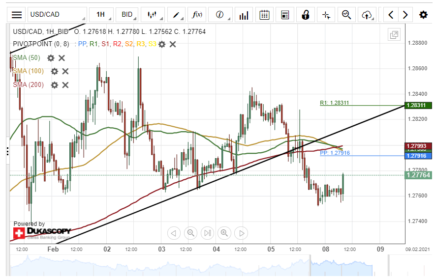 Downside risks dominated the US Dollar against the Canadian Dollar on Friday. As a result, a breakout occurred through the lower boundary of an ascending channel pattern.