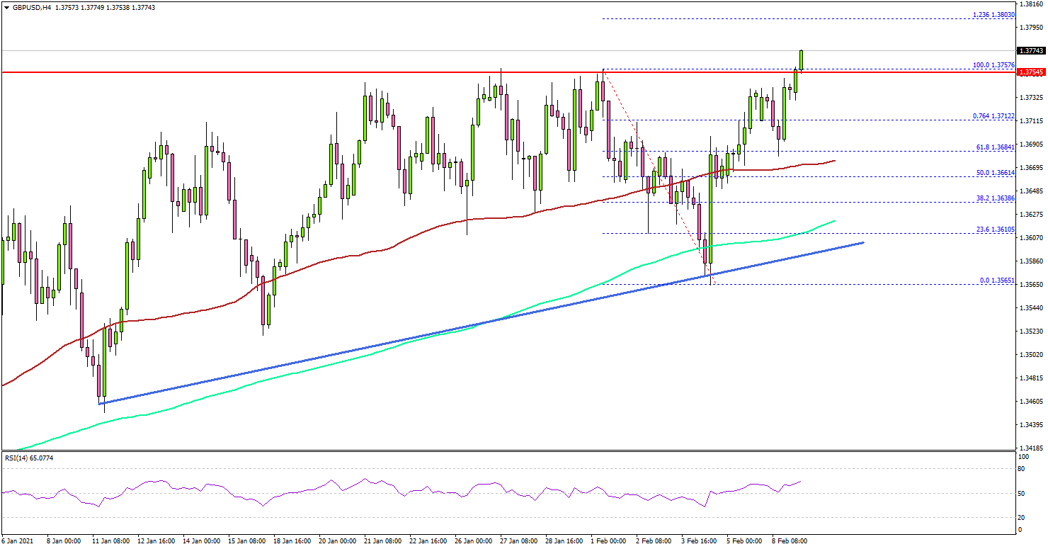 The British Pound made another attempt to clear the 1.3750 resistance against the US Dollar. Finally, GBP/USD was able to gain strength to clear the 1.3740 and 1.3750 resistance levels.