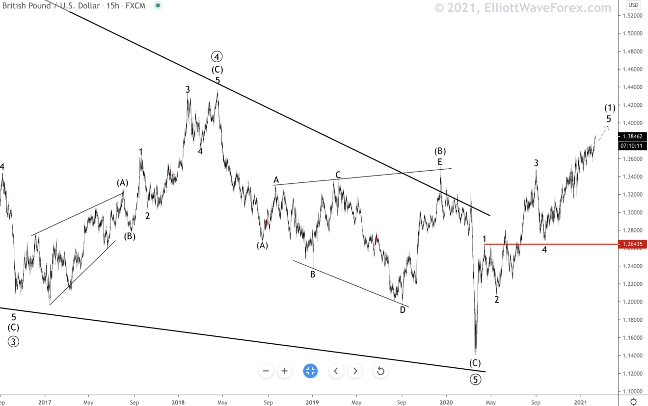 The fifth wave of wave (1) is still underway, so we could see the market a little bit higher in the short term. However, wave 5 is running out of its steam, so a bearish second-wave correction us likely going to begin in the days to come.