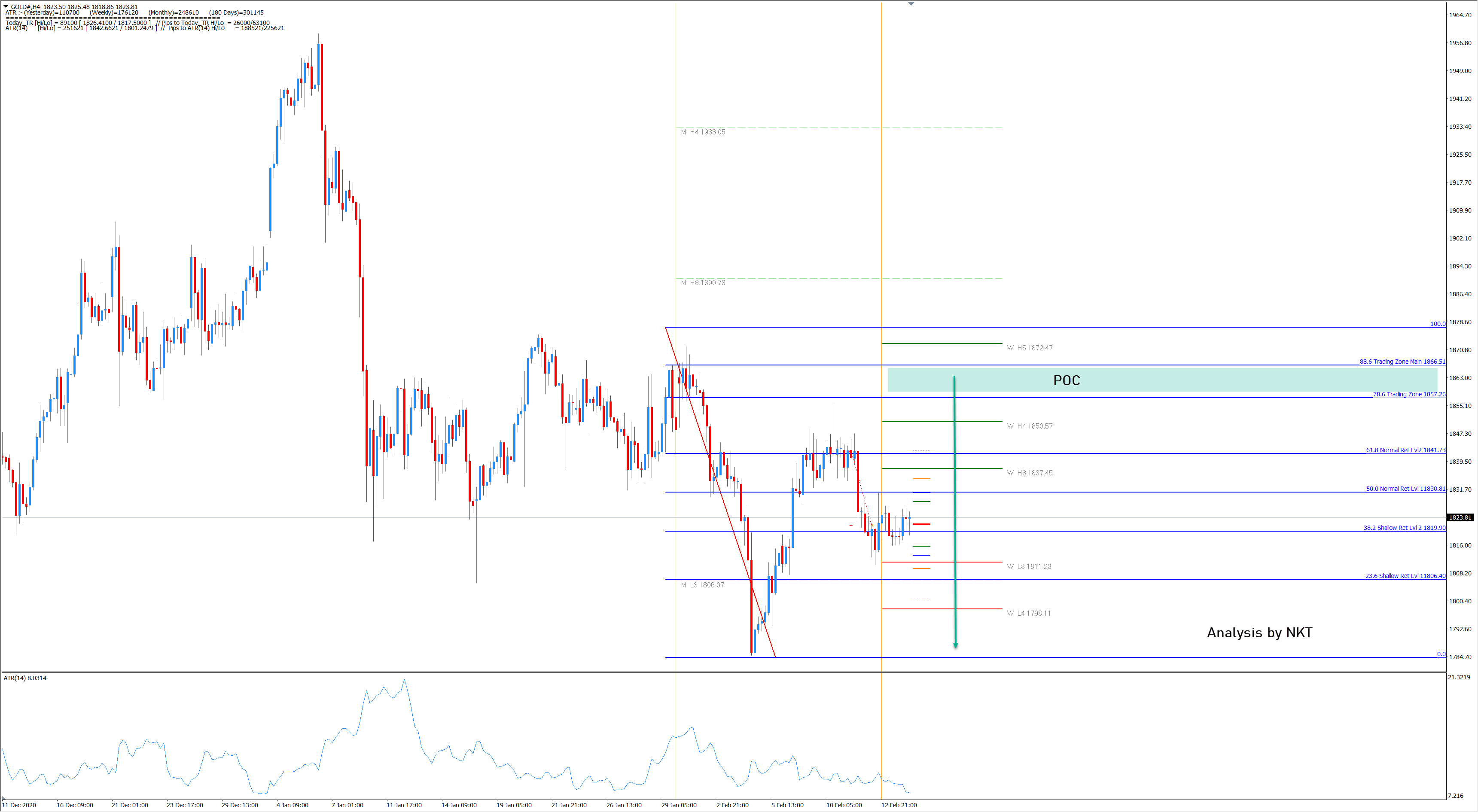 At this point we might be waiting for a gold pullback towards 78.6-88.6 zone to make another short trade. Last week short trades came in good profits and I think the POC zone will be valid again for short sellers. 1855-66 is the zone where sellers are waiting. In the case of rejection we need to watch for 1838 followed by 1811 and 1785.