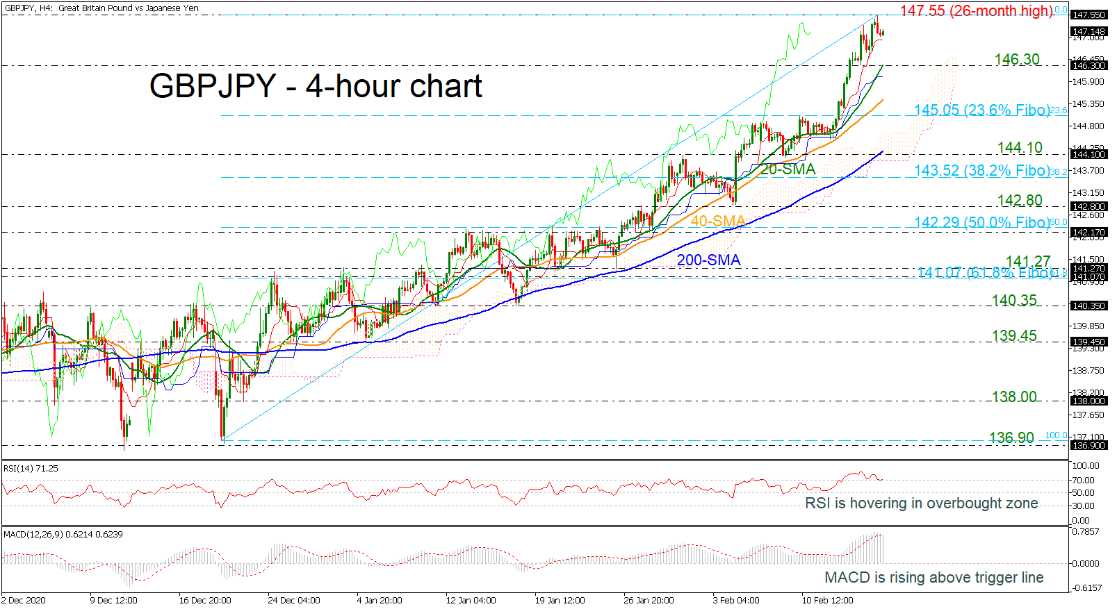 GBPJPY has been fading its strong upside tendency over the last 4-hour sessions, trading below the new 26-month high of 147.55.