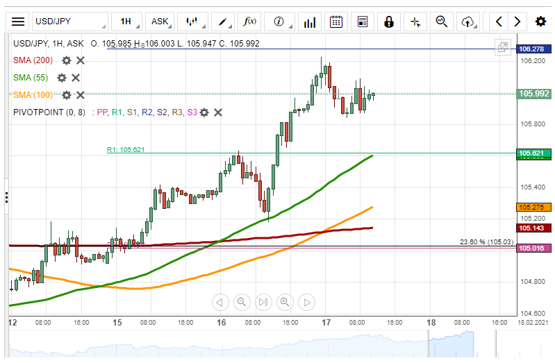 The USD/JPY currency pair has touched the psychological level at 106.20.